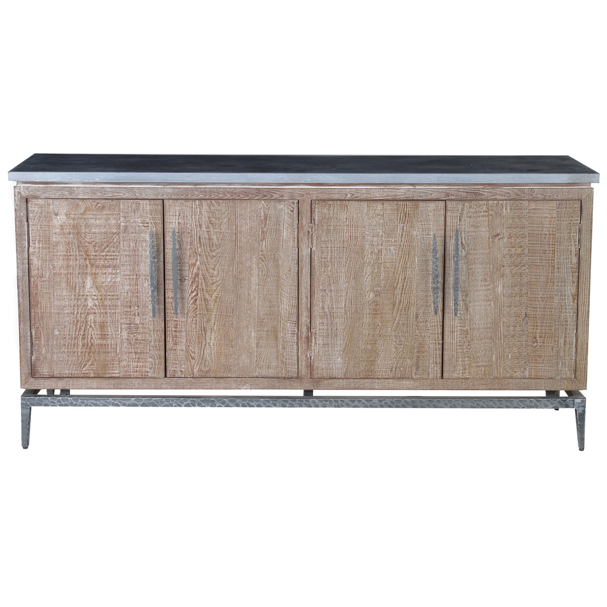 Our Cromwell sideboard is rife with eco-friendly appeal. Made of sustainably sourced pine, topped with stone, and supported by an iron base, this mixed media sideboard has plenty of storage behid its four doors and will complement any dining area.