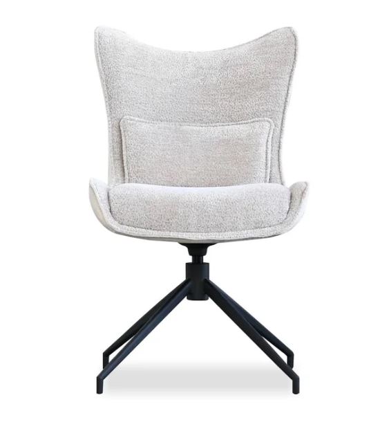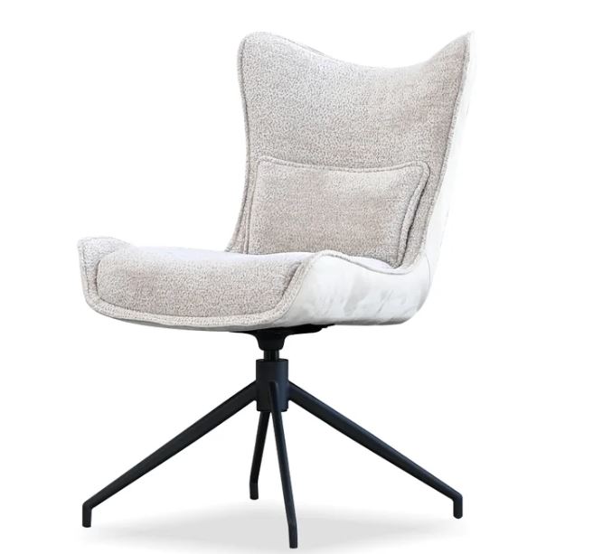 The AMALFI dining chair is upholstered in a unique two-toned body with black powder coated steel legs. This stylish chair features a 360-degree swivel base and a plush cushioned seat/back design.