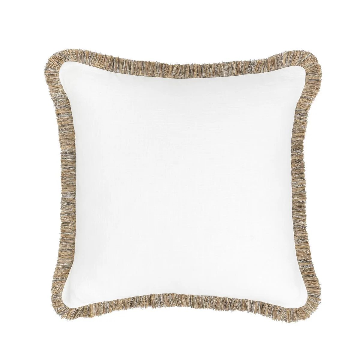 A grounded cotton and linen textured fabric raise the lush texture of fringe around this pillow design. A perfect pillow for layering, a soft feather and down blend insert gives this pillow a lavish supportive feel that makes it as comfortable as it is beautiful.