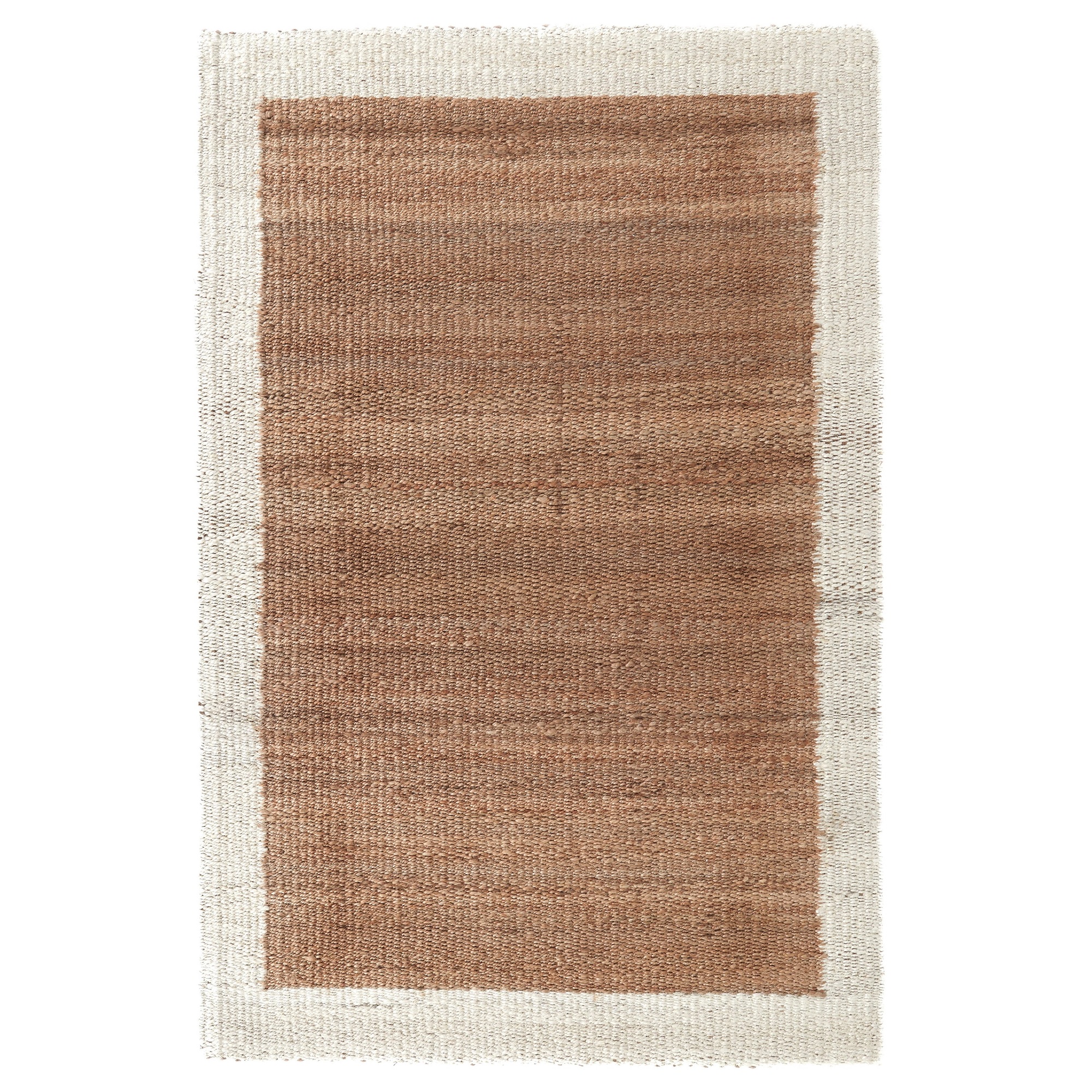 Handwoven from two-toned jute fibers, this rug offers an eco-friendly version of a traditional rug pattern. The ivory border creates a frame around the undyed jute fibers, highlighting the organic, woven texture of this rug.